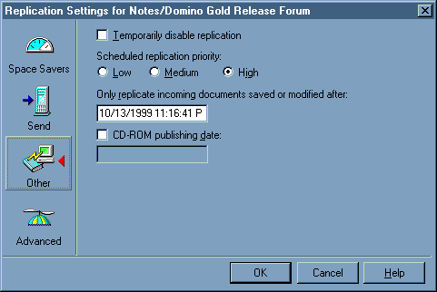 - In the Replication Settings for ... dialog, click the Other button --> choose the priority radio button desired. Open the example below.